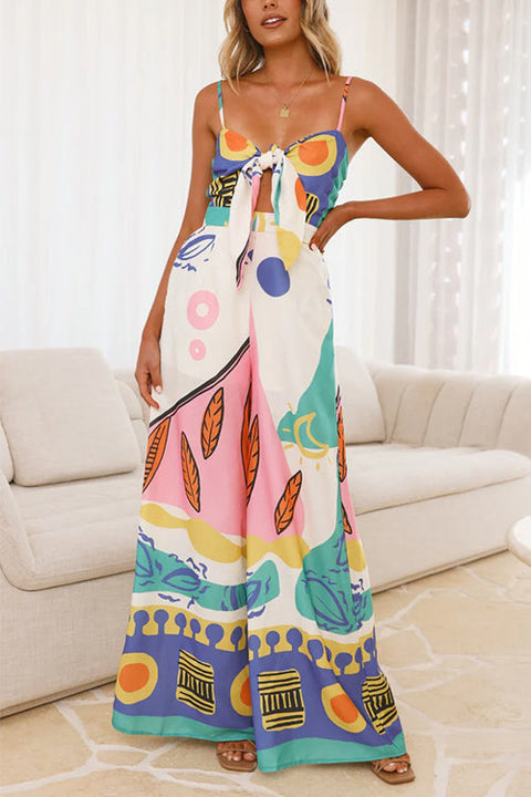 Rebadress Back Lace-up Ruffle Hem Slit Floral Print Maxi Cami Dress